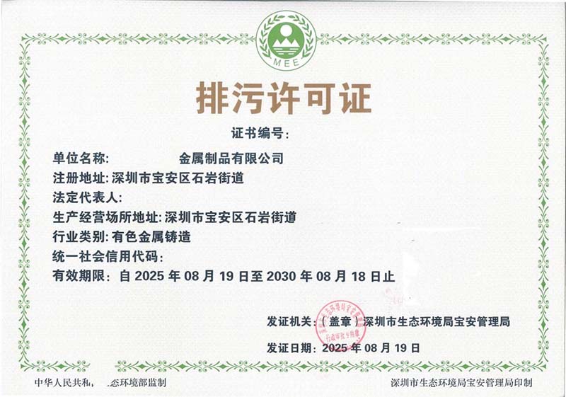 某金属制品公司排污许可证