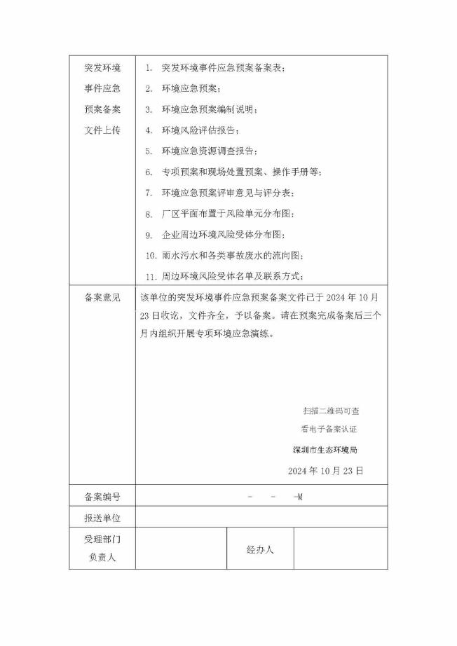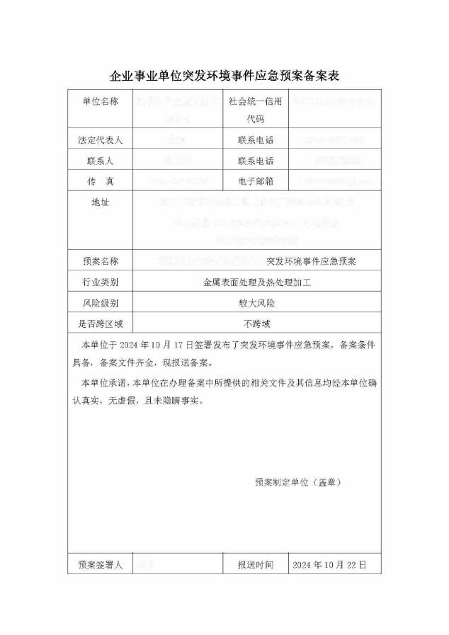 某金属制品公司应急预案备案表
